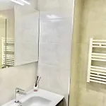 Це помешкання оснащене ванною кімнатою, в якій є фен. Крім того, є пральна машина.